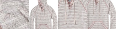 - Raw edge seams around hood opening, pocket seams and neckline