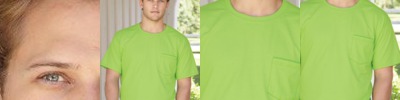 6.1-ounce, 100% US ring spun cotton Soft-washed, garment-dyed fabric Top-stitched, classic width rib collar Twill-taped neck and shoulders Twill label Left chest pocket Double-needle collar and bottom hems Relaxed fit, seamless body