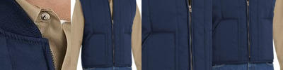 - Two angled chest pockets with concealed flap zipper closures