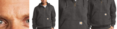 Rain Defender durable water-repellent technology has your back all day, every day in this rugged mock sweatshirt that stands up to weather and tough jobs. 13-ounce, 75/25 cotton/poly blend or 55/45 cotton/poly blend with Rain Defender durable water-repellent finish (Black, New Navy)* 55/45 cotton/poly blend with Rain Defender durable water-repellent finish (Carbon Heather) Attached jersey-lined three-piece hood with drawcord closure Mock neck collar with 8-inch antique-finish brass zipper Front hand warmer pocket with hidden security pocket inside Stretchable, spandex-reinforced, rib knit cuffs and waistband Carhartt label sewn on hand warmer pocket *Please note: Select colors in Carhartt fleece are currently transitioning from a 75/25 cotton/poly blend to a 55/45 cotton/poly blend. Weight and fabric properties remain the same. Your order may contain a combination of both fabrics.