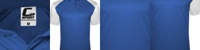5.9 oz/yd2 / 200 gsm, 92% cotton, 8% Spandex jersey; Moisture-wicking and antimicrobial performance; Two-piece mandarin collar with hidden three-button placket; Dyed-to-match buttons; Side vents; Stretch performance; Active fit; Easy care;