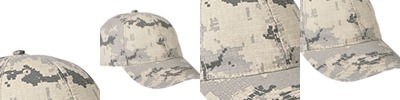 100% cotton ripstop fabric; 100% cotton rip stop fabric; Self fabric back strap with silver clasp and buckle; Heavy distressing on visor; Self-fabric color under visor; Matching color eyelets, sweatband and seam tape; Matching color heavy raised stitching on crown and visor; Pre-curved visor; 6-panel, unstructured, low-profile with heavy enzyme wash;