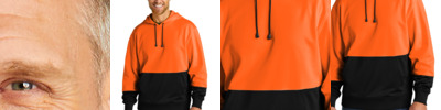 Enhanced visibility joins moisture-wicking performance in this layerable worksite basic. 5.5-ounce, 100% polyester smooth-faced fleece Moisture-wicking Black bottom front and lower sleeves for a cleaner appearance Three-panel hood with drawcord adjustable closure Taped neck Front pouch pocket Rib knit cuffs and hem