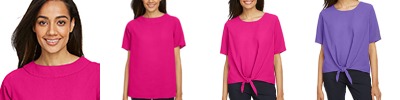 6.1 oz., 100% pre-shrunk cotton, 18 singles; Open-end yarn; Two needle bottom hem; Made in USA;