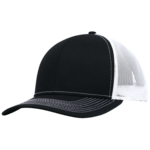 Cotton, poly, wool/acrylic front panels and visor; Polyester mesh; 6-panel, structured, mid-profile; Semi-pro stitching; Slightly curved visor; Contrasting visor stitching; Plastic snap closure;
