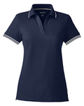 60% cotton, 40% polyester; Ribbed collar and cuffs with contrast striped tipping; Striped neck tape; Branded two button placket; Short-sleeve with ribbed trim; Side slit hem; J-Class logo on left sleeve; Classic Nautica flag label at left side seam;