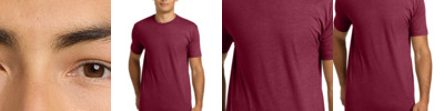 4.3-ounce, 60/40 combed ring spun cotton/poly, 32 singles CVC blend 1x1 rib knit neck Shoulder to shoulder taping Tear-away label Side seamed