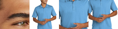 3.5 oz/yd2 / 130 gsm, 100% polyester interlock; Moisture-wicking and UV protection performance; Cationic dyes for superior brightness and color fastness; Three-button placket; Integrated collar stays; Dyed-to-match buttons; Tear away label;