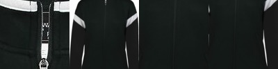 - Contrast-color lycra binding at collar and sleeve hems