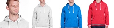 7.3 oz., 60% cotton, 40% polyester mélange fleece; Contrast self-fabric sleeves and hood; 1x1 rib cuffs and waist; Full front zippered placket;