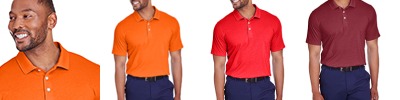 5.64 oz., 85% polyester, 15% cotton; subtle heather texture; moisture-wicking; mechanical stretch; ultrasoft, cottony feel with the performance of polyester; 3 button placket; silcone Puma Cat logo on left sleeve;