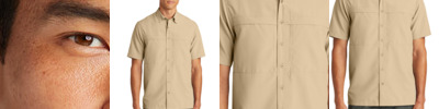 Sun and moisture are no problem for this versatile, lightweight, highly breathable shirt. Relaxed styling makes it perfect for outdoor or indoor wear. 2.2-ounce, 100% polyester poplin 2.5-ounce, 100% polyester poplin (White) 2.1-ounce, 100% polyester poplin (Plaids) Moisture-wicking UPF rating of 30 Hidden button-down collar Dyed-to-match buttons Translucent buttons (Plaids) Two chest pockets with concealment flaps and hook and loop closures Vented back panel with mesh ventilation Straight hem with side vents
