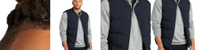 With wider baffles for a modern look, this water-resistant puffer looks cool while keeping you warm. 100% polyester shell and lining Molded center front zipper Interior storm flap Interior right chest pocket Zippered hand pockets Insulation method: 4.4-oz. polyfill Water protection method: water-repellent finish Port Pocket for decoration access Adjustable hem with locking drawcord