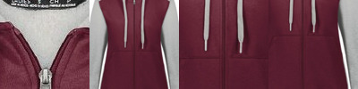 - Three-piece hood with elastic binding at the opening and a scuba collar