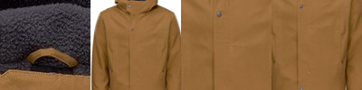 Boardroom-bound or loosely layered, this versatile twill overshirt combines the clean design of a blazer with just the right amount of stretch. The result fits in at work, at home and anywhere in-between. Fabric+Weight 7.2-ounce, 69/29/2 poly/rayon/spandex stretch twill Features+Benefits Open collar Faux horn-rimmed buttons Double chest pockets with button flaps Drop shoulders Deep back yoke with wide box pleat Lower patch pockets Adjustable rounded cuffs Longer length Rounded hem