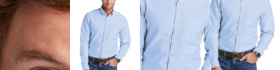 Achieve a polished look and all-day comfort with this game-changing lightweight shirt, a modern interpretation of a timeless silhouette. 3-ounce, 77/20/3 cotton/nylon/spandex Open collar with removable stays French placket Pearlized buttons Rounded, adjustable cuffs