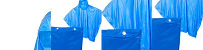 - Disposable rain poncho with hood in compact pouch