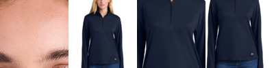 Perfectly polished, this elevated, sueded 1/4-zip performs with stretch and transcends the line between work and leisure. 9.1-ounce, 50/44/6 rayon/recycled poly/spandex double knit fleece OGIO heat transfer label for tag-free comfort Shawl collar Reverse coil zipper with debossed, brushed silver O icon pull Drop shoulders Forward side seams Blousing detail at sleeves Banded cuffs and hem Embroidered O icon on left hem