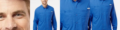 - Columbia woven patch on chest pocket