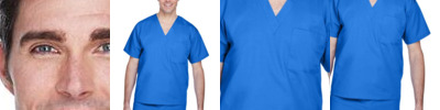 4.9 oz./yd² / 166 gsm (US), 8.2 oz/Lyd (CA), 55/45 cotton/polyester poplin Standard V-neck Chest pocket