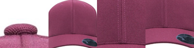 97/3 polyester/spandex Team 365 by Flexfit® Pro-Performance® moisture-management Structured, six-panel, mid-profile Flat bill Contrasting sewn eyelets and top button Spandex sweatband