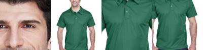 4.5 oz./yd² (US), 7.5 oz./L yd (CA), 100% polyester snag-protection piqué Moisture-wicking performance UPF 15-39 protection Anti-microbial properties Self-fabric collar with integrated collar stays Three-button placket Dyed-to-match buttons Side vents