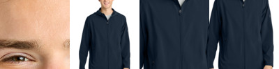 When performance counts, this wind jacket is a shield against the elements with 4-way stretch fabric and durable water repellent finish. 5-ounce, 94/6 polyester/spandex 4-way stretch Durable water repellent (DWR) finish Adjustable zipper on right side Three-piece hood Elastic adjustable pullers at waist Zippered side pockets Richardson high definition silicone logo on left sleeve