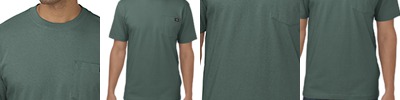 5.4 oz., 50% cotton, 50% polyester; Open-end yarn; Full cut; Shoulder-to-shoulder taping; Double-needle sleeve and bottom hems; Made in the USA;