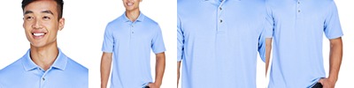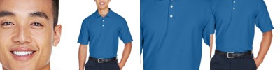 6.3 oz./yd2 / 215 gsm, 100% combed cotton pique with EZ Cool wicking technology; no-pill, no-fade, no-shrink, no-curl collar, no-wrinkle performance; Active fit; Three-button placket;