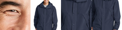 100% nylon taffeta; Wind- and water-resistant; Front welt pockets; Raglan sleeves with full elastic openings; Snap center front opening and open-bottom hem finish; InconspicuZip™ on inside for easy embroidery access; Heather Grey jersey lining (Sunray Yellow lined in White);