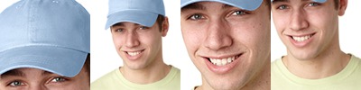 100% washed cotton twill front panels and visor; 100% polyester soft mesh back panels; Structured; Mid-profile; 6-panel; Self-adhesive closure; Matching top button and sewn eyelets; Contrast stitching on visor and self-fabric sweatband;