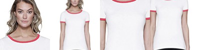 4.3 oz., 52% cotton 48% polyester, 30 singles; Ultra-fine cotton blend; Fashion fit; Side seams; Scooped neckline; Tear-away label; Made in a w.r.a.p. certified factory;
