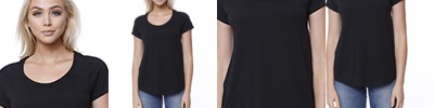 4.3 oz., 52% cotton 48% polyester, 30 singles; Ultra-fine cotton blend; Fashion fit; Side seams; Clean-finished curved bottom hem; Tear-away label; Made in a w.r.a.p. certified factory;