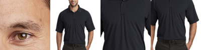 100% polyester; Smooth knit with true hue technology™ on front and back panels; 92% polyester /8% spandex pinhole mesh inserts for breathability ; True hue technology™ prevents dye migration; Wicks Moisture; Pad print label ; Two-button placket; Contrast color inserts and piping ;