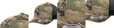 71% cotton, 28% nylon, 1% polyurethane; Official licensed MULTICAM® pattern ; Pattern is the proven multi-environment concealment solution; Black plastic snap closure; Hard buckram; Black undervisor; OSFA;