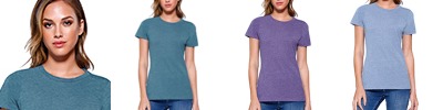 Slim fit Tear-away label Side seamed Triblend Colors: 3.8-ounce, 50/25/25 poly/Airlume combed and ring spun cotton/rayon, 40 singles Black Heather Triblend: 70/15/15 Airlume combed and ring spun cotton/poly/rayon