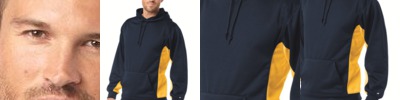9 oz., 60% cotton, 40% polyester athletic fleece; Woven label; Hood with drawcord on Adult sizes only; Contrast color inserts; Raglan sleeves; Front pouch pocket; Rib-knit cuffs and bottom band;